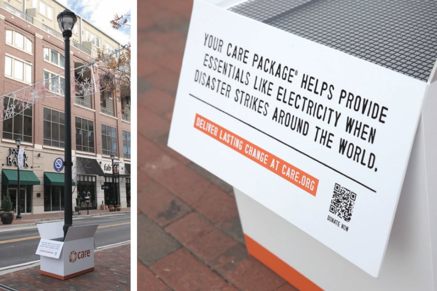 We placed over-sized CARE Packages around light poles at Atlantic Station in Atlanta.