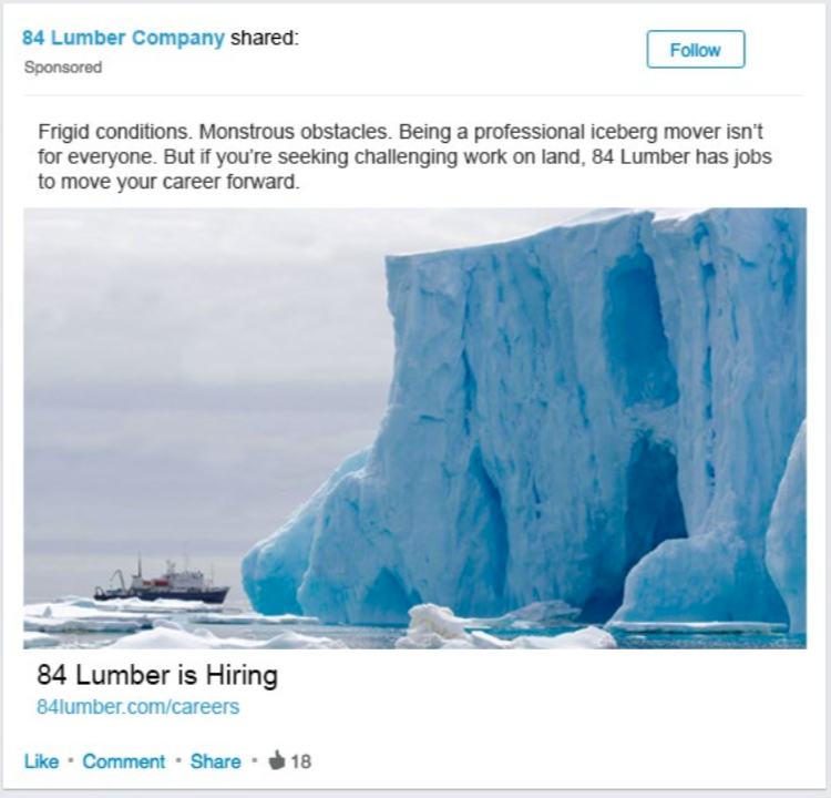 With major plans to expand, 84 Lumber had a serious need to hire more employees. But not just any employees would do. They needed 84 Lumber material recruits. Ambitious, fearless go-getters who possessed the grit and determination to do whatever it takes to get the job done.